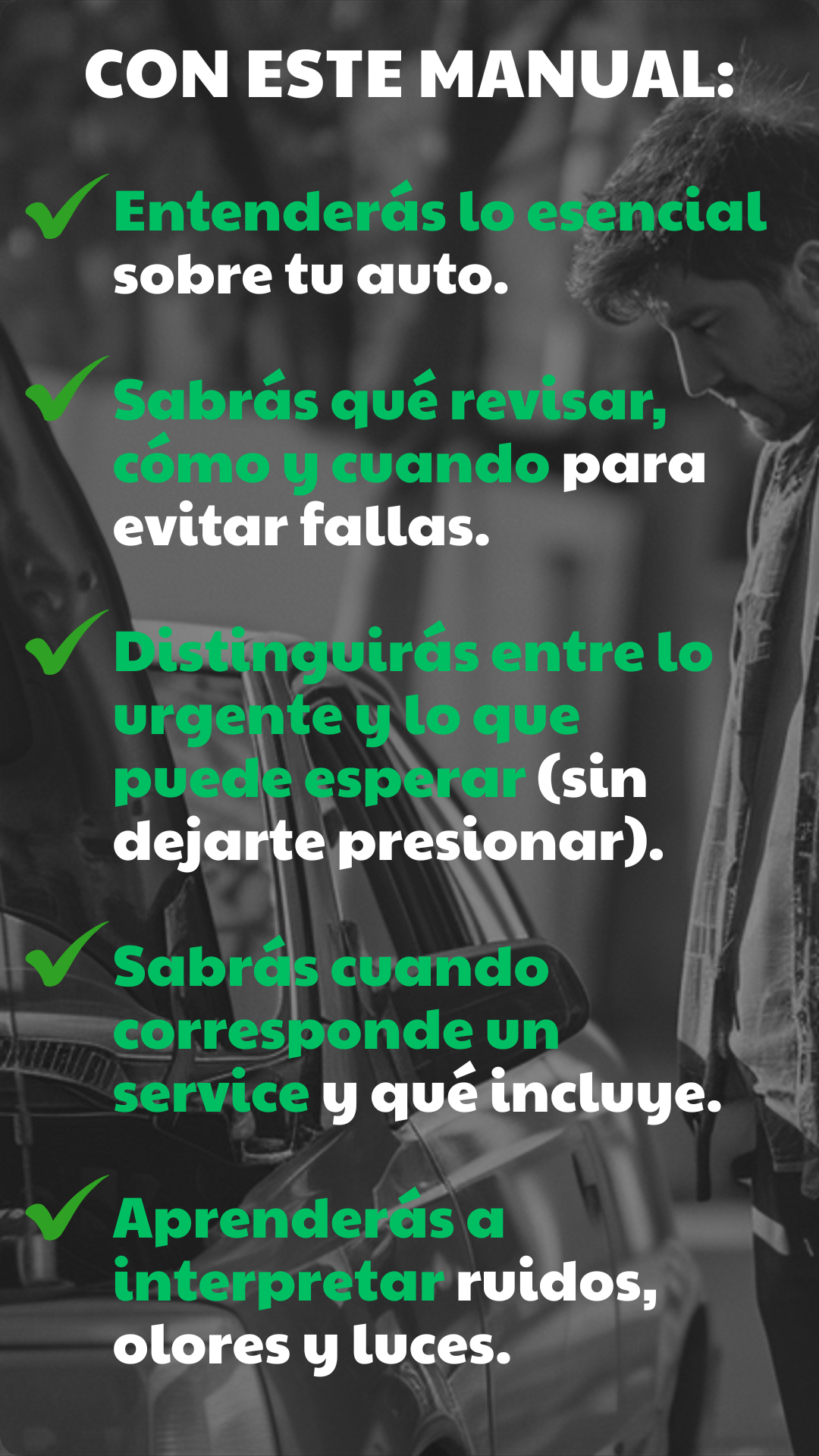 Si después de leerlo (aunque sea por arriba) no podés interpretar las luces del tablero, saber qué revisar cada mes, distinguir qué es urgente y qué no, y sentirte con más criterio frente al mecánico… entonces no quiero tu plata.